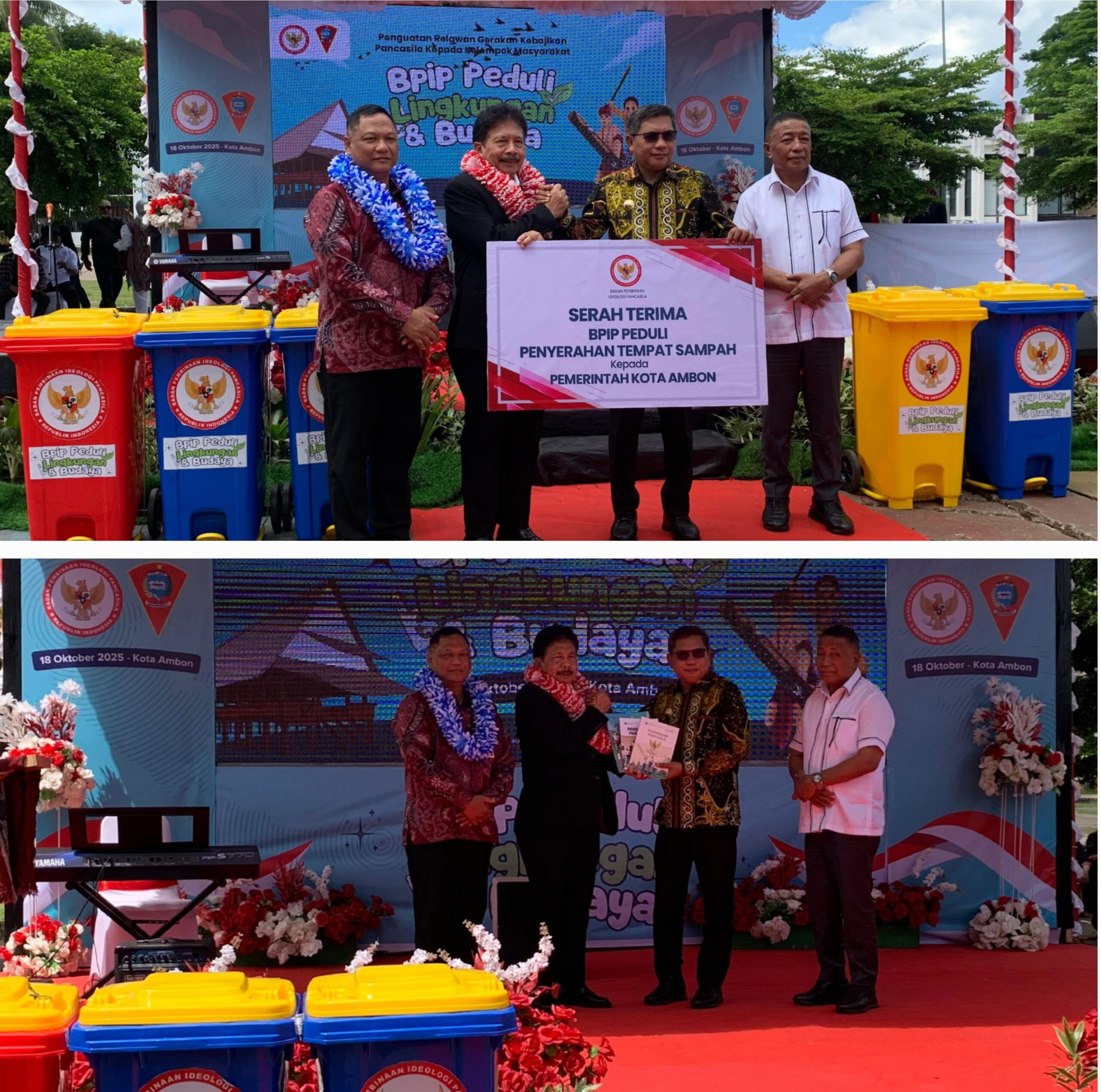 Dalam kegiatan tersebut, BPIP juga menyerahkan 50 unit tempat sampah sebagai bagian dari kampanye kepedulian terhadap lingkungan, serta buku teks utama Pendidikan Pancasila yang akan digunakan di tingkat SD, SMP, dan SMA di Kota Ambon.