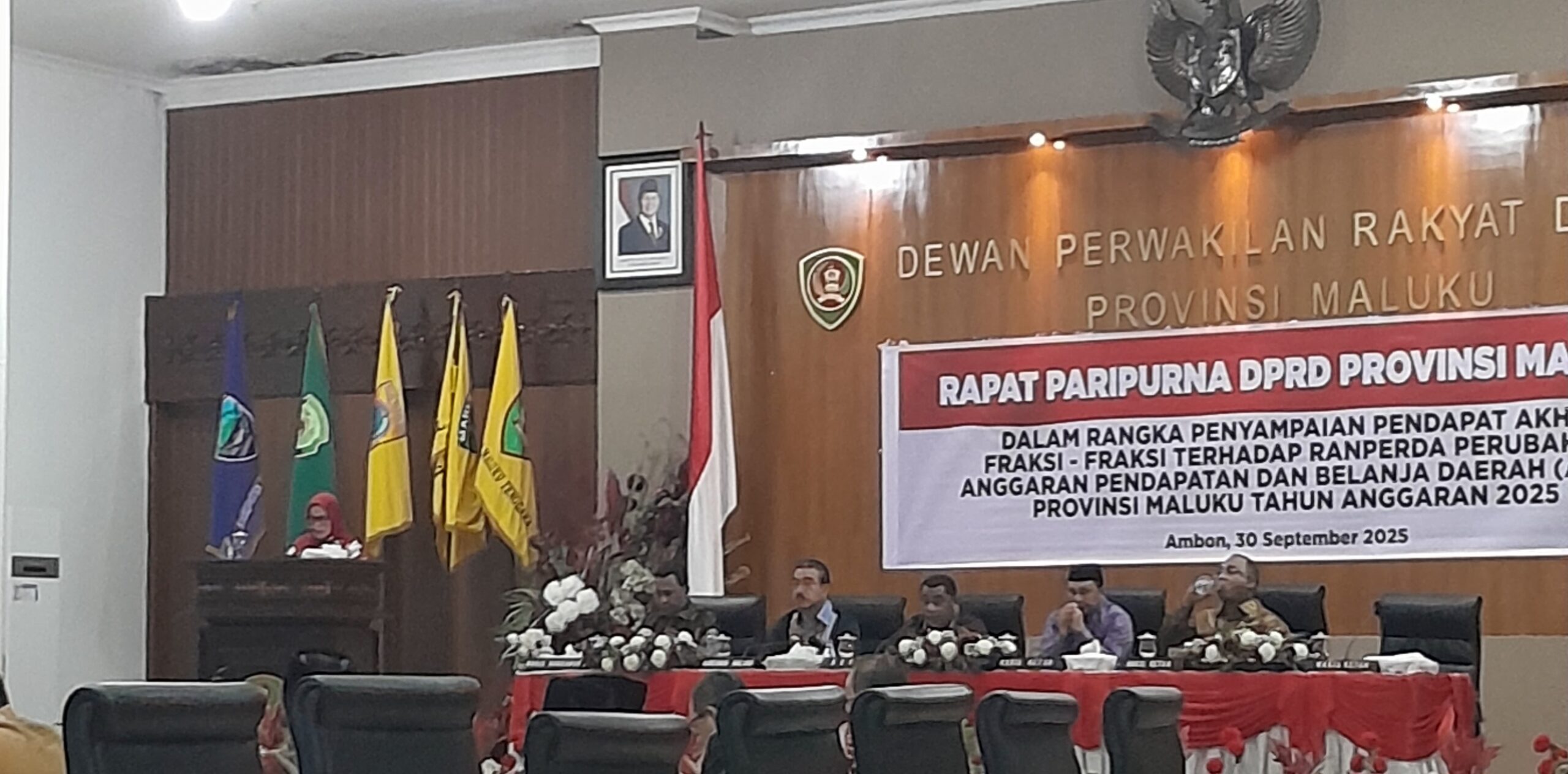 Ambon., Malukubarunews.com – Dewan Perwakilan Rakyat Daerah (DPRD) Provinsi Maluku resmi menyetujui dan menetapkan perubahan Anggaran Pendapatan dan Belanja Daerah (APBD) Tahun Anggaran 2025 dalam rapat paripurna yang digelar pada Senin, 29 September 2025, di Ruang Paripurna DPRD Maluku.