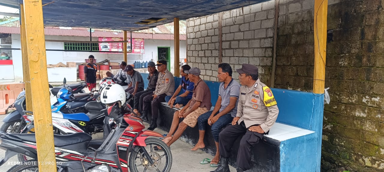 Suasana dalam kegiatan berlangsung penuh keakraban. Warga Dusun Tahoku menerima kedatangan aparat dengan terbuka dan berdialog langsung seputar kondisi keamanan di lingkungan mereka.