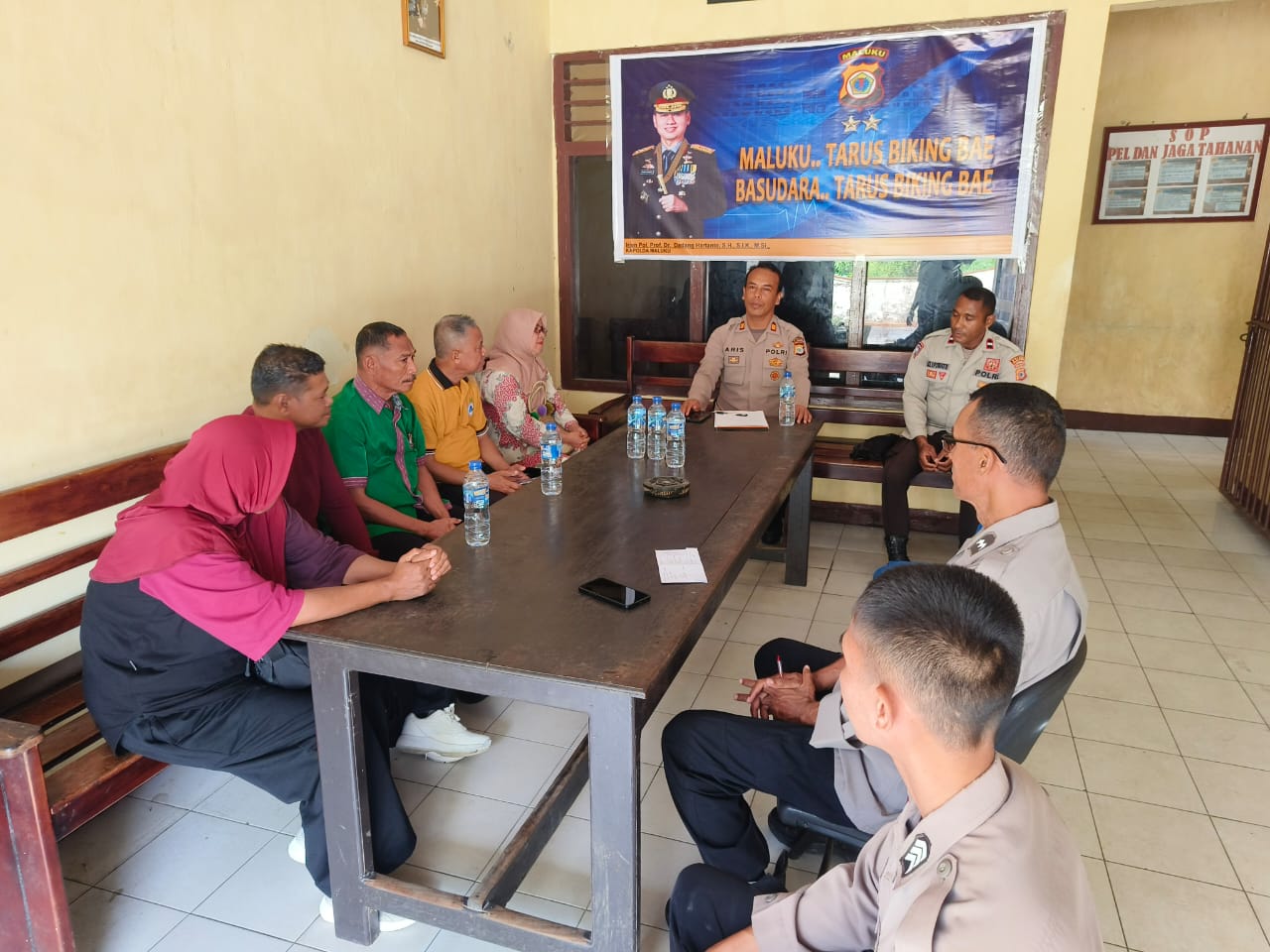 Kapolsek Salahutu AKP Aris S. Sos membuka pertemuan dengan menegaskan bahwa situasi keamanan dan ketertiban masyarakat di Tulehu secara umum masih terkendali. Namun ia menyoroti eskalasi kasus tawuran pelajar yang kini merembet hingga ke luar lingkungan sekolah.