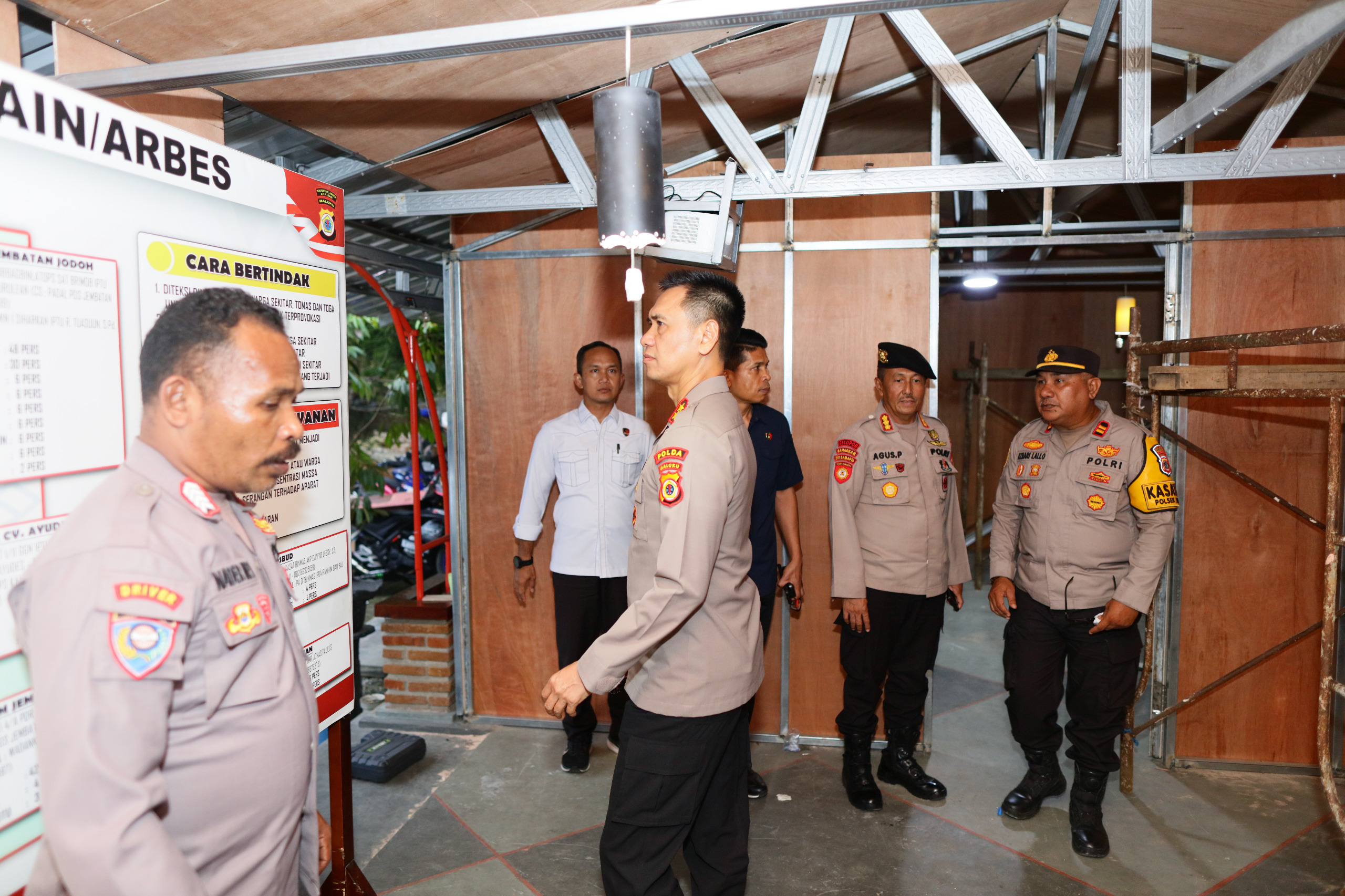 Selain meninjau aspek teknis, Kapolda Maluku memimpin pembahasan situasi kamtibmas terkini di kawasan Stain–Arbes dan sekitarnya. Ia menekankan pentingnya deteksi dini, pemetaan kerawanan wilayah, serta peningkatan patroli dan kehadiran polisi di tengah masyarakat sebagai langkah pencegahan.