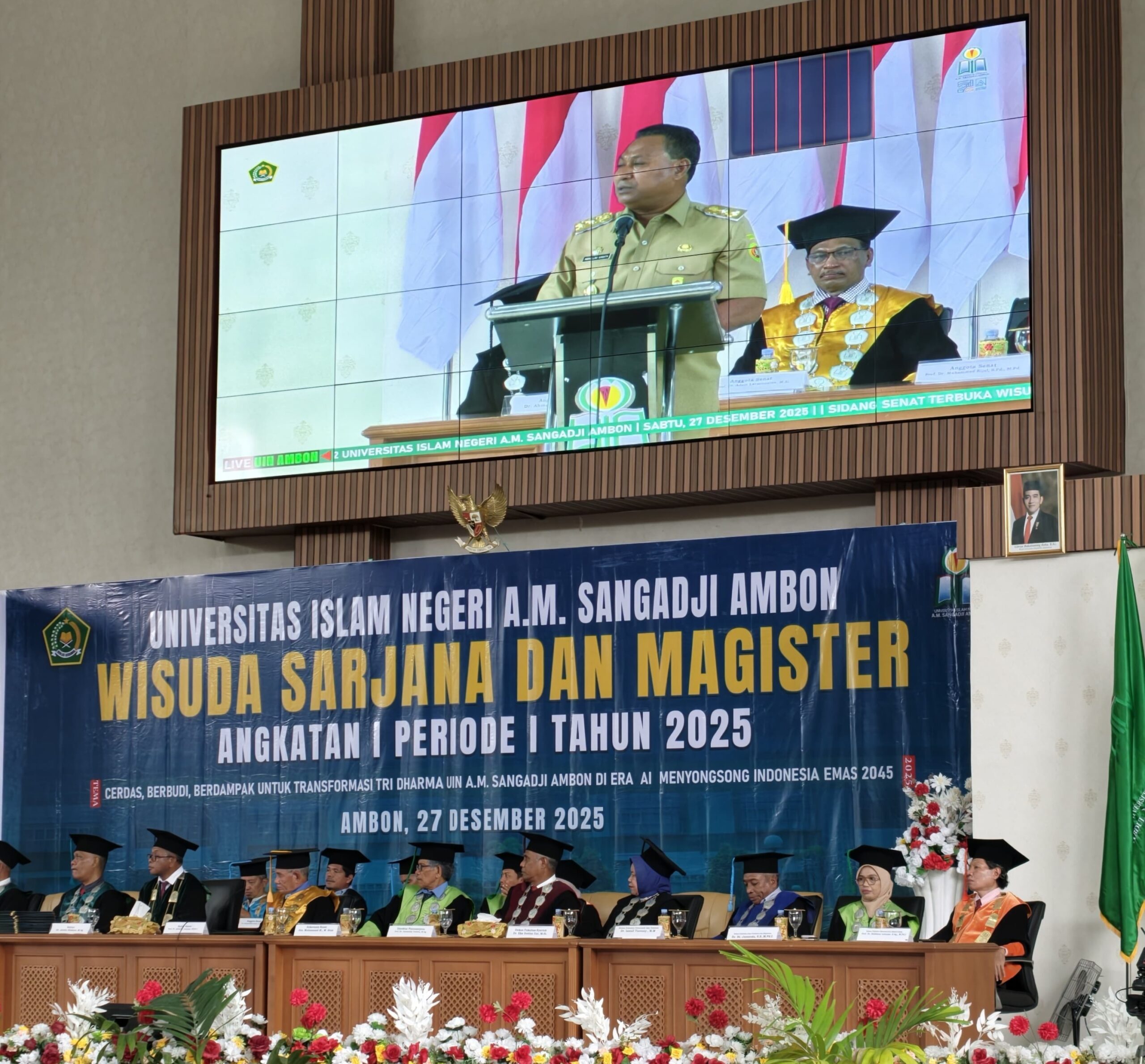 Ambon.malukubarunews.com — Wakil Gubernur Maluku, Abdullah Vanath, menghadiri Wisuda Sarjana dan Magister Angkatan I Periode I Universitas Islam Negeri (UIN) A.M. Sangadji Ambon yang digelar di Auditorium kampus setempat, Sabtu (27/12/2025). Kehadiran Wakil Gubernur menandai dukungan Pemerintah Provinsi Maluku terhadap penguatan peran perguruan tinggi dalam pembangunan daerah.
